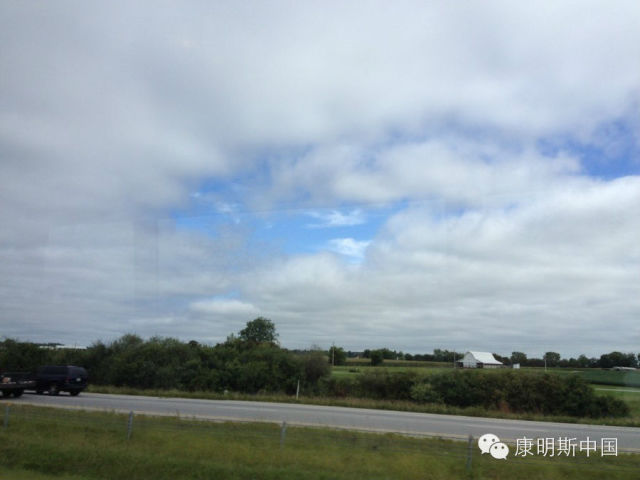 To go the Cummins history showroom, we set off from Indianapolis, Indiana, to the South, through a cornfield which under the blue sky, and white clouds on the highway, we can appreciate the scenery along the way.